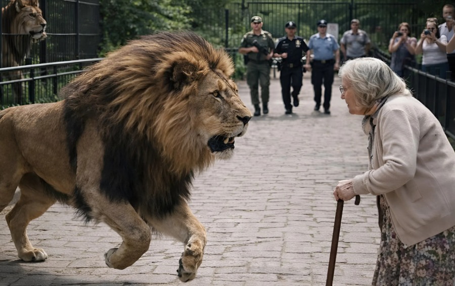 Ett lejon rymde från djurparken och när det fick syn på en äldre kvinna i parken stannade det bredvid henne; krypskyttarna hade redan siktat in sig på honom, men just i det ögonblicket hände något helt oväntat 😨😢