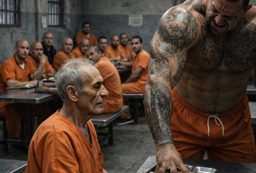 I fängelset attackerade en farlig brottsling en gammal man och hällde mat över honom bara för att han vägrade flytta sig: men det som hände en minut senare chockade alla 😲😨
