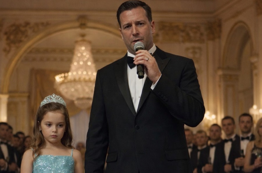 Daniel stod framför gästerna med en mikrofon i handen, och bredvid honom stod hans åttaåriga dotter Emily. Flickan, klädd i en vacker blå klänning, höll hårt i sin pappas hand och stirrade tyst framför sig. Hon hade inte sagt ett ord på tre år.