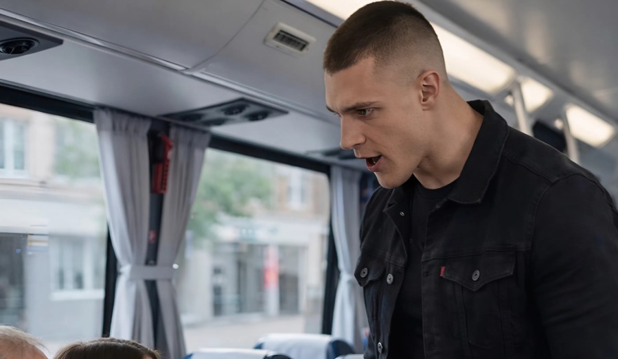 När det unga paret klev på bussen kände man genast spänningen. Kvinnan höll sig i stången med ena handen och höll den andra på magen, hennes ögon var röda av tårar och hennes rörelser var osäkra, som om hon stod på sina sista krafter. Mannen gick nästan tätt bakom henne, lät henne inte ta ett enda steg ifrån honom, och i hans röst hördes redan ilska.